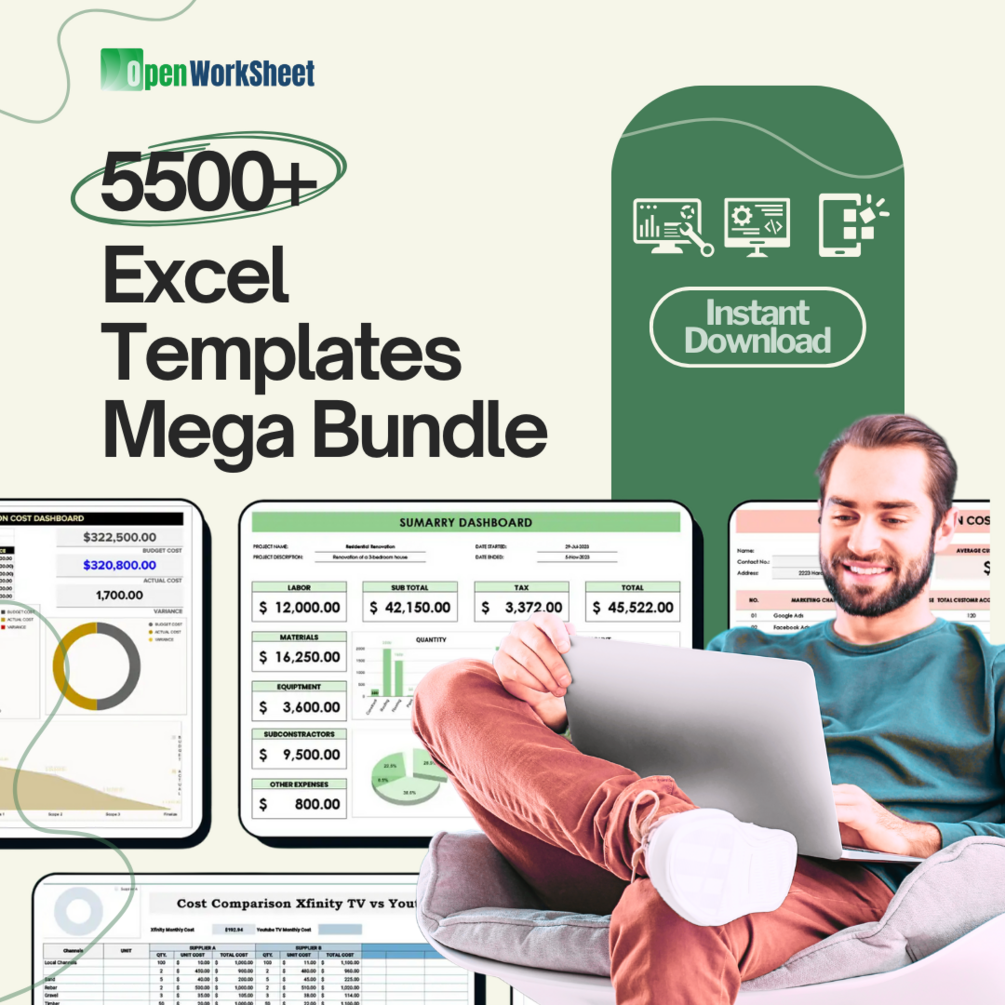 ✔️ 5500+ High-Quality Templates in One Bundle ✔️ Compatible with Microsoft Excel & Google Sheets ✔️ Fully Editable & Customizable ✔️ Instant Digital Download – Use Immediately ✔️ No Subscription – One-Time Purchase